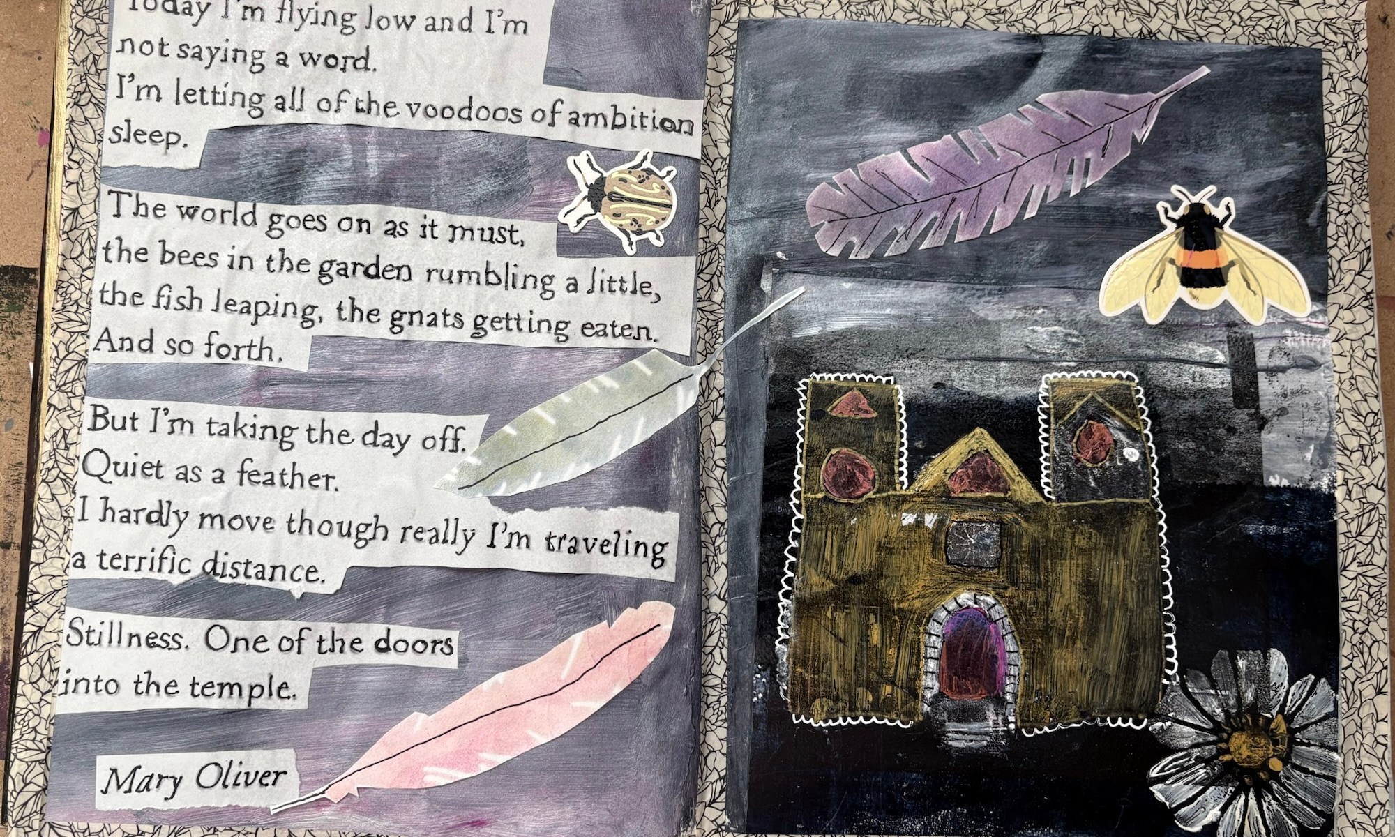 This is what came out with my paintbrush today. I picture myself in the little house waiting for an easier sunnier day. Enjoy the poem by Mary Oliver.